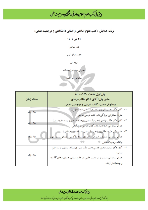 کلیدواژه‌ها: نخستین همایش ملی کتب علوم اسلامی و انسانی دانشگاهی و مرجعیت علمی مرجعیت علمی سازمان سمت
